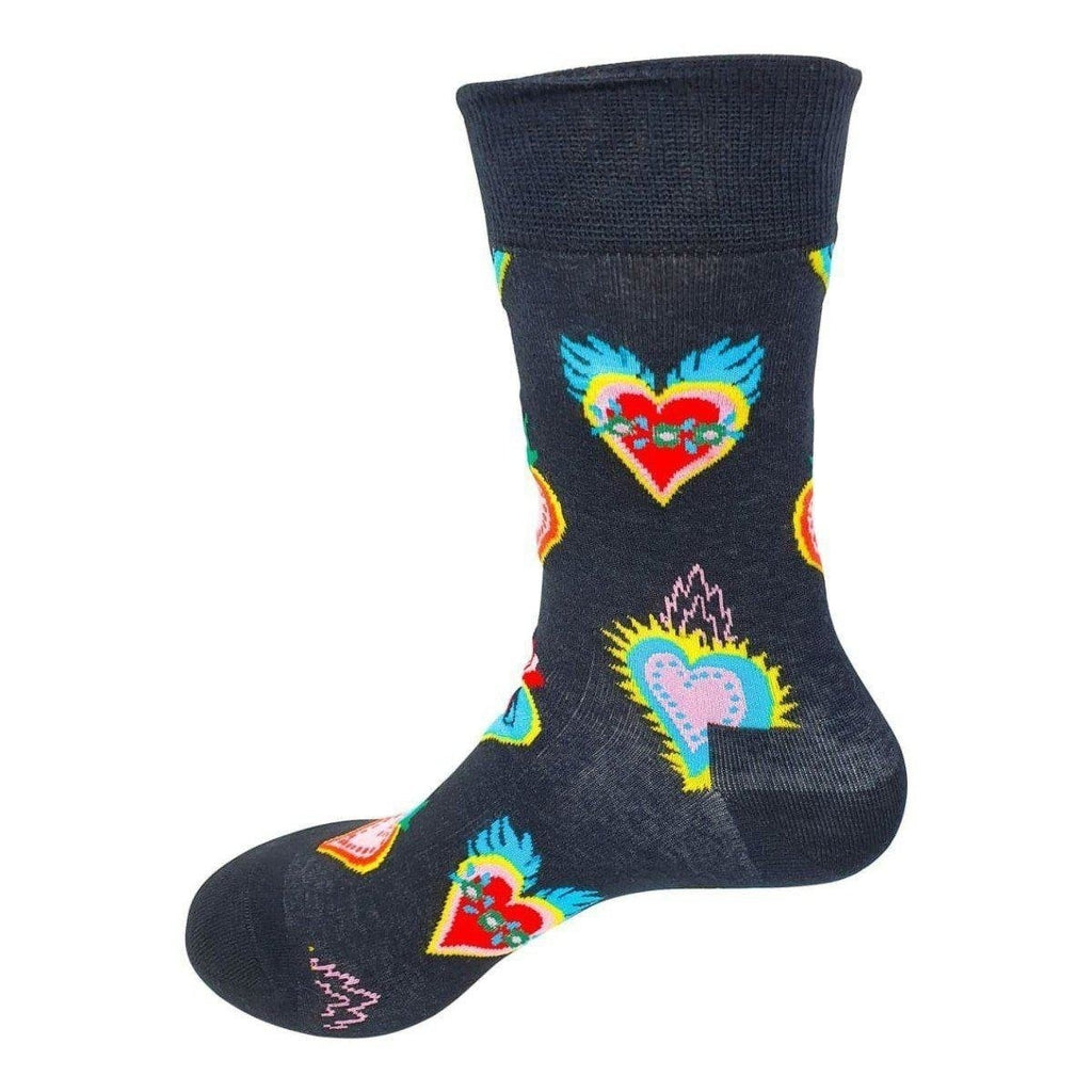 Send your daily sock game to space with love! These crew socks feature an all-around colorful heart shape pattern that will soothe your feet and soul.