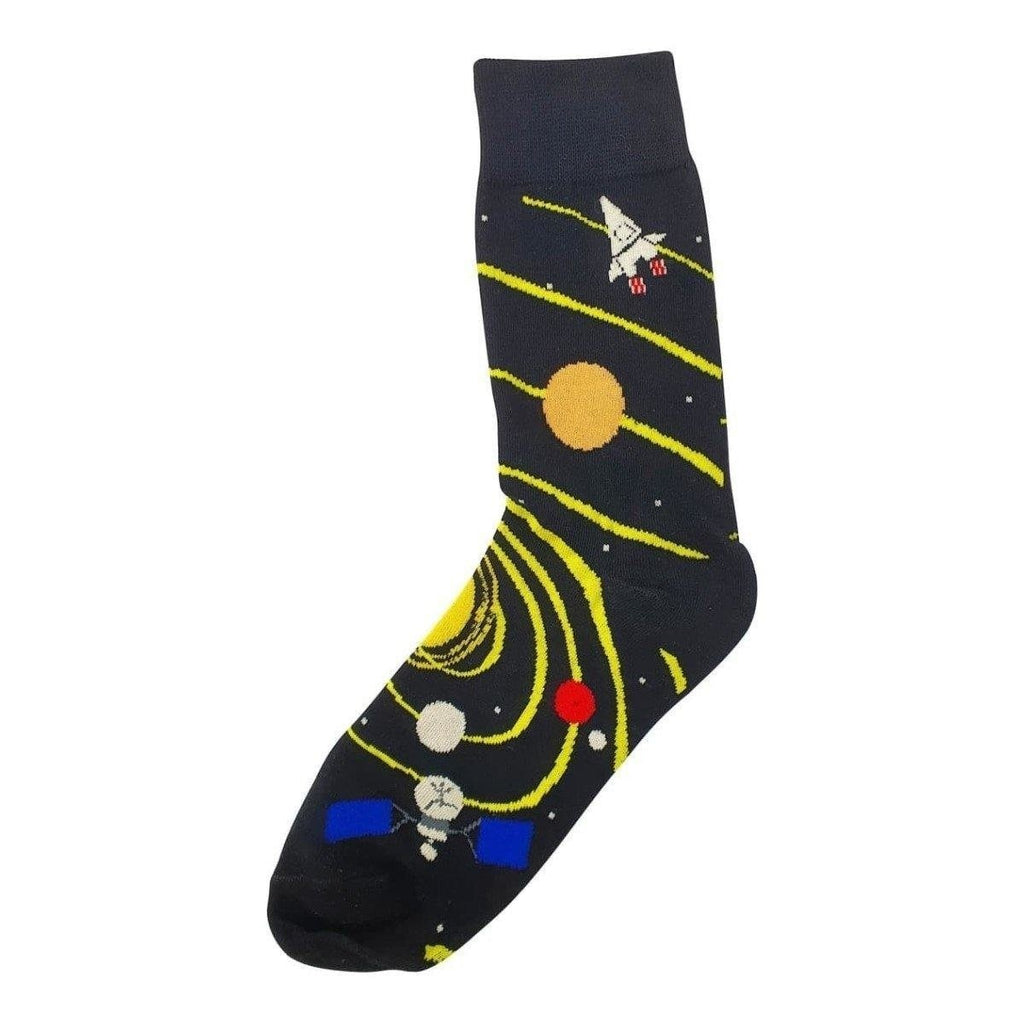 Make all your science teachers proud wearing our Solar System Travel Crew Socks! All the planets, satellites, and a rocket ship in flight detail these socks.
